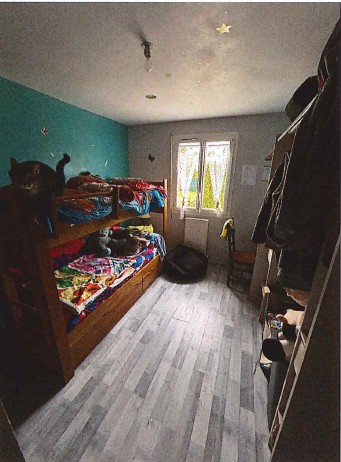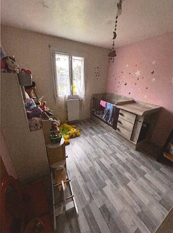 comprenant une entrée/cuisine, séjour, trois chambres, WC, salle d’eau, garage et jardin.